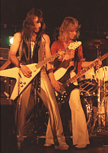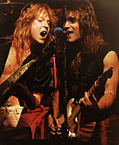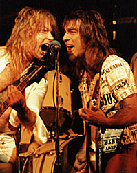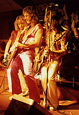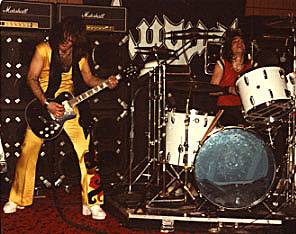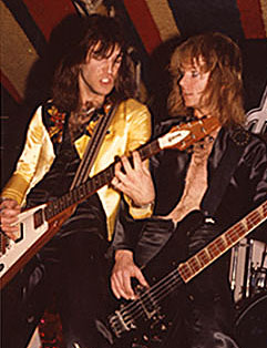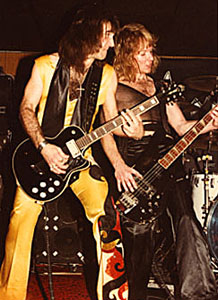 August had huge ups and downs. They backed bands like Cheap Trick, Rainbow, Rick Derringer, Spinal Tap, Krokus and Quiet Riot. We used to play often at Mt. C's Rock Palace in Lowell, Mass. - a HUGE room with a great stage. (The purplish stage shot at the top is from Mr. C's.) Dave always had it together. He looked good, sounded good, and played awesome! (Still does!) Even back then he didn't drink or smoke. Geez! The guy didn't even get pimples!
