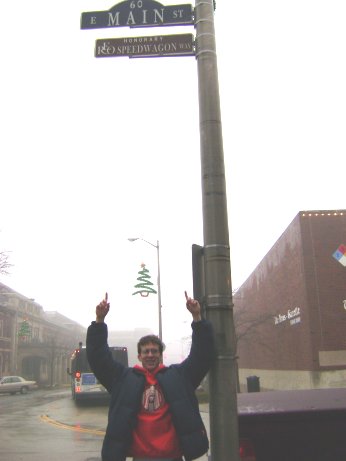 Four months back I meet coworker Patrick Hatch on the job and he tells me that he grew up in Champaign. I instantly make the REO connection and ask him about REO. He says he's a big fan of Dave and the band and tells me all kinds of stuff I never knew about REO. We become instantly bonded for life. He says ... "I'm going home for Thanksgiving and I'm going to get my picture on REO Speedwagon way in Champaign and I'll send it to you."