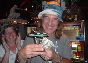 Dave was the big winner at the Slot Tournament on the Cruise. Look at that cash, and a trophy with the ship on it! Oh, braggin' rights go with the trophy. Congratulations Dave!